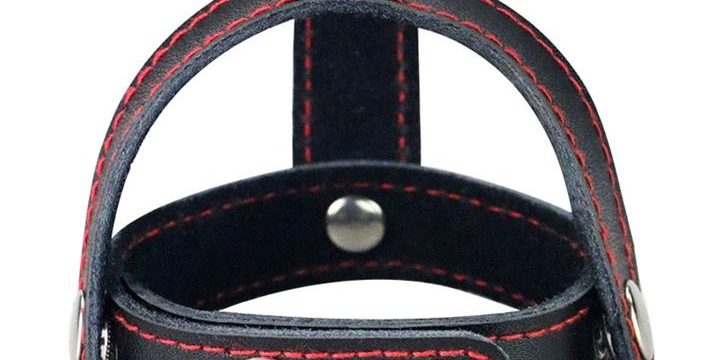 Bondage Fetish – T-Style Leather Cockring With Ball Divider