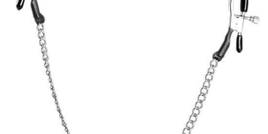 Take your kinky adventures to the next level with these alligator nipple clamps. Fully Adjustable, they provide a firm squeeze that’s best enjoyed by all BDSM enthusiasts. Adjustable screws enable seamless domination over tension levels. Once the clamps are in place, try tightening the pins little by little to slowly increase the intensity. The PVC Coated Clamps on these nipple clamps are highly adjustable, allowing you to apply just the right amount of scintillating pain to your naughty little sub and then locking it at that level, for that fine line between pleasure and pain. The rubber coating on the ends of the clamp ensures that the nipples feel the pinch of the clamp without cutting into the skin. The PVC coated ergonomic finger-pads make removal fast and simple. The Gorgeous Silver Chain turns the nipple clamps into a piece of lovely jewelry like embellishment when worn as part of a sexy outfit. Take your BDSM play to greater heights with gentle tugs on the chain, or for more adventurous users you can add weights to the chain for increased intensity and pleasure. For extra impact, you can use the chain to pull your lover towards you.Tease and please with these alligator nipple clamps. Offering a firm grip for a satisfying sensation, each metal clamp features 2 pinchers covered with supple rubber liners for increased intensity and pleasure. Place each clamp on a nipple, adjusting the screw pin to set the perfect amount of tension to provide exquisite pinching pleasure with a little hint of exquisite pain. Enhance the experience further by gently pulling on the adjoining chain. The removal of the clamps will trigger a rush of delightful warmth as your blood flows back into each tingling nipple. When you release the nipple clamps your nipples will feel pert and ultra-sensitive to subsequent touches. Adjustable nipple clamps for sensational nipple arousal PVC coated tips soften sensation The metal chain adds weight for more intense stimulation