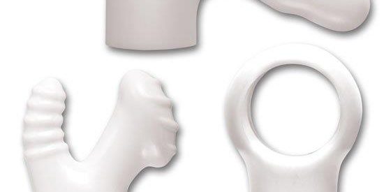 Turn your Mini Wanachi® massager into the ultimate pleasure device with this sensual set of three head attachments. Each Wanachi® massage head is made from flexible vinyl and slides over the existing silicone head. The powerful vibrations are transferred from the Wanachi® to the attachment, giving you endless possibilities and making your Wanachi® the only toy you’ll need. Choose between a cleverly curved g-spot/p-spot probe, a perfectly placed clit stimulator, or a vibrating masturbator ring for him. The heads are made from nonporous, latex-free vinyl and cleanup easily after the fun with Toy Cleaner and warm water. Try them in the spa or shower and turn bath time into pleasure time! TIP: Put lubricant on the Wanachi’s massage head before sliding on each attachment. The lube helps the vinyl piece slide easily over the silicone head.N/A