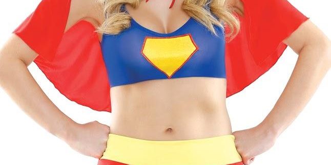 Cos you wanna play… Save the day in our Super Sexy four piece set. Soft microfiber cape, contrasting blue and yellow half tank, pleated skirt and matching panty are included in this stunningly heroic bedroom costume. Your partner will surely surrender to your will when they see you wearing this powerful costume. Available in Small/Medium and Medium/Large: Small/Medium:Size: 2-8 (AUS 6-12)Bust: 32-34Hips: 34-36 Medium/Large:Size: 8-14 (AUS 12-18)Bust: 36-38Hips: 38-40 * Please note: This product is shipped seperately from our warehouse in Melbourne and same daydespatch cannot be guaranteed.This item is not available for delivery outside of Australia. Cape Ruffled Skirt Superhero Graphic Detail on Tank Top Matching Panty