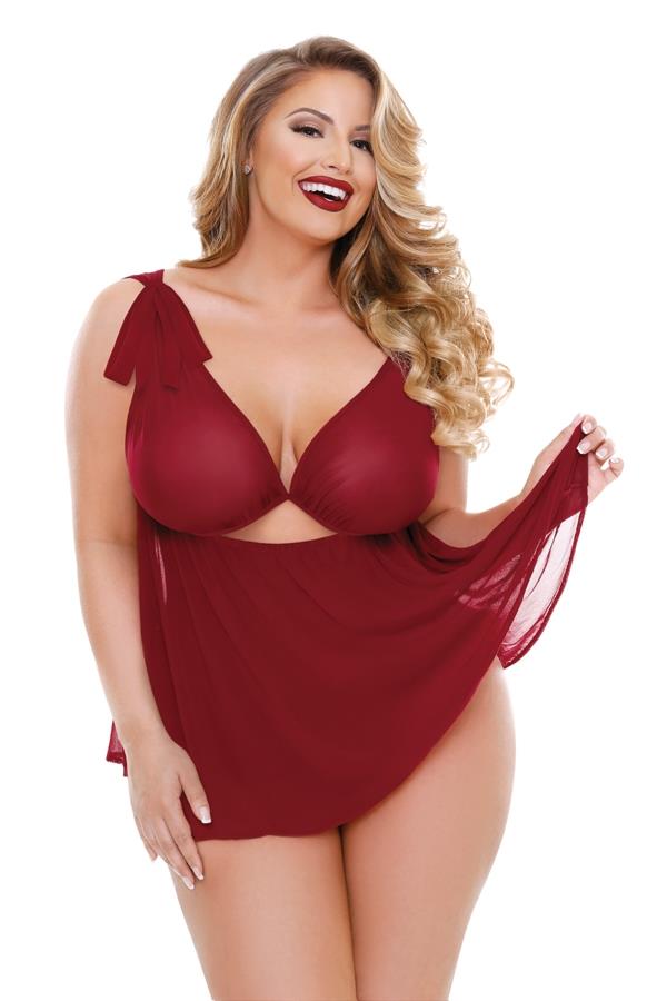 Curve – Ruby Shoulder Tie Babydoll with Matching Panty