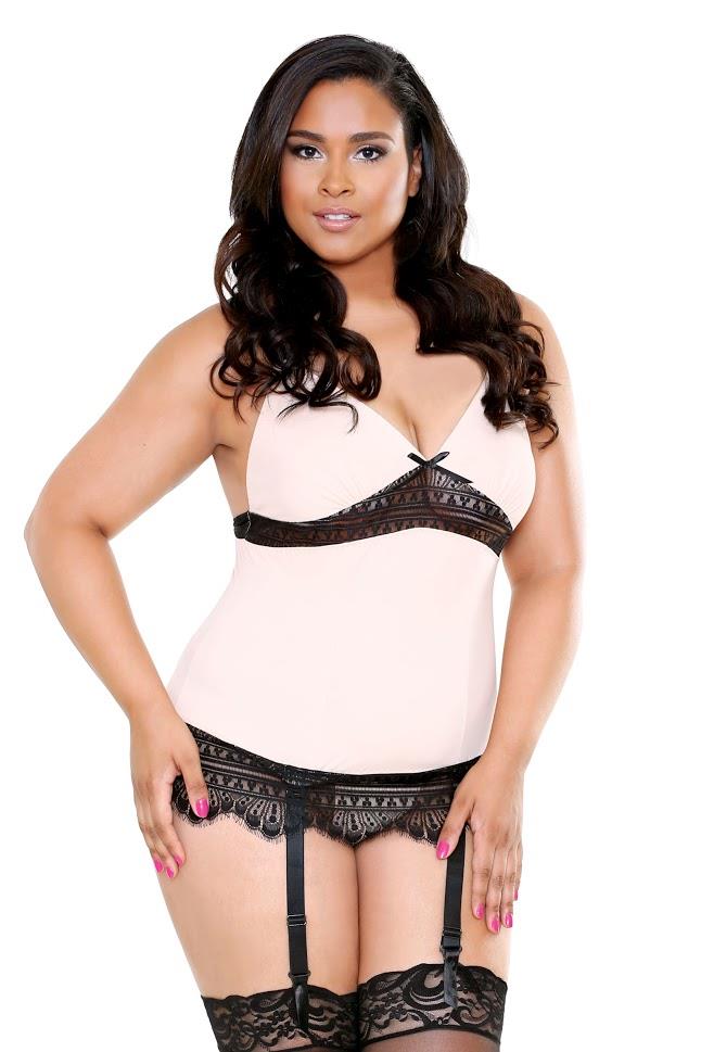 Tease – Lexi Bralette & Gartered Panty With Criss Cross Back Detail