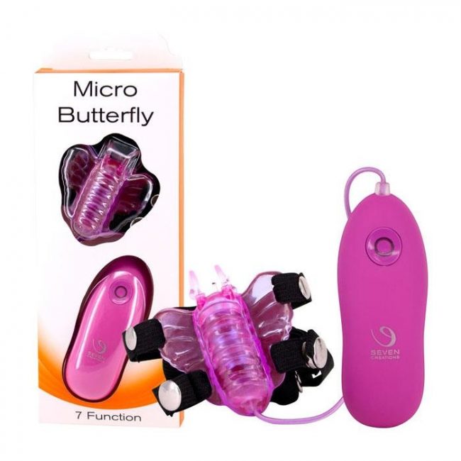 One of the best selling direct clitoral stimulators at Femplay! The Micro Purple Jelly Butterfly is a soft jelly polymer toy that is securely held against the clitoris by strong adjustable nylon elastic straps that wrap around the waist and thigh area. This ensures that the Butterfly sits squarely against your most sensitive spot on your body and delivers hands free pleasure at the flick of a switch. A small but intense bullet delivers quiet yet strong vibrations over the body of the butterfly and along the wings. The small antennae give little flutters against your mound and the textured body also rubs delightfully during use. As an alternative you can adjust it to sit slightly lower on your vagina to experience indirect stimulation for a different experience. Due to the elastic nylon straps that hold it in place, this toy can be worn under most clothing and you can be confident that the secure straps will not break as the elastic is riveted together. This ensures extra security whilst wearing the Micro Purple Jelly Butterfly. The small handheld battery casing holds two AA batteries and can be held in place by the elastic bands. The elastic bands are fully adjustable meaning this product will fit most without issue. As it is a smaller sized toy, this toy is popular to use in conjunction with other toys such as vibrators or can also be worn during sex and is especially popular for those that like to change positions frequently but also want direct clitoral stimulation. If your hands or your partner’s hands are getting tired during sex, or you want a cute but powerful toy, then the Micro Purple Jelly Butterfly is for you. The Micro Butterfly is a great wear and play toy that is available at Femplay. As one of our top selling direct clitoral stimulators, the Micro Butterfly has tiny antennae that tease and tickle with the added bonus of a tightly placed butterfly body to tantalize you all over. It is recommended that with this toy, you tighten the straps quite tightly during play, especially when walking/standing or flexing your leg muscles to ensure that the toy remains securely in the position that you want it in. With a light and easy to use hand held controller that is attached to the device – you can be assured that when you adjust the setting there will be an immediate response, right when you want it!