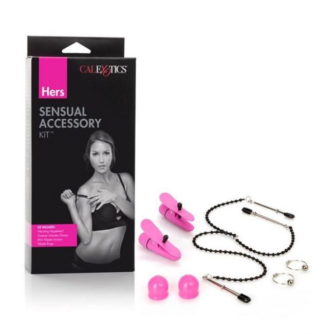 The Hers – Intimate Kit is to dress up and play with your beautiful magnificent nipples. Vibrating Nipplettes are a very popular adult toy that a lot of woman love to play with. They are designed to be clipped on to your nipples. You can use whatever pressure you desire as they are adjustable with an easy to use twist dial. Then when you are ready you simply press the button at the base and let the vibrations run through your nipples and your breasts providing you with ample pleasure. Mini Nipple Suckers are perfect to achieve big pointy and erect nipples. This can assist with all the other toys in the kit as the pointer nipple you have the more fun is to be had. These little suckers are just placed over the nipple and squeeze to pump them up. Tweezer Intimate Clamps not only do these clamp look stunning they feel amazing. They are intimate jewellery for all of your best parts. Clip them on your nipples and clit and feel the pleasures on the pinch as well as the beaded jewels caressing your body. No need to be pierced to have some of the enjoyment. Nipple Rings again, you don’t have to go through the pain of getting pierce to experience what you can from having some nipple rings. Hers – Intimate Kit is a delicate yet playful kit just for her…or is it?! Vibrating Nipplettes Mini Nipple Suckers Tweezer Intimate Clamps Nipple Rings