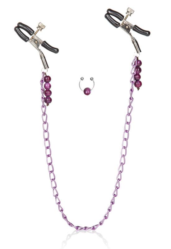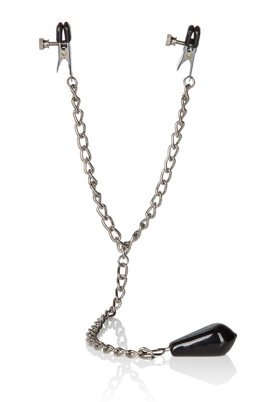 Nipple Clamps can heighten the nipples’ sensitivity and free your hands during play! The Nipple Clamps™ Silver Beaded provide immediate erotic response with adjustable tension so you can choose from a light pinch to a tight clamp. Coated with black latex, these adjustable clamps are comfortable and non-tarnishing. Nipple clamps provide erogenous nipple stimulation for both men and women. Their effect is similar to that of your lover playing with or sucking your nipples, particularly when the interlinking chain is gently pulled. Rubber-Coated and Non-Tarnishing. Navel Ring Included. Comfortable, totally adjustable, rubber coated nipple clamps.Aroused by having your nipples pinched or flicked during lovemaking or masturbation? You’ll love the continuous heightened sensitivity that these sexy clamps provide.