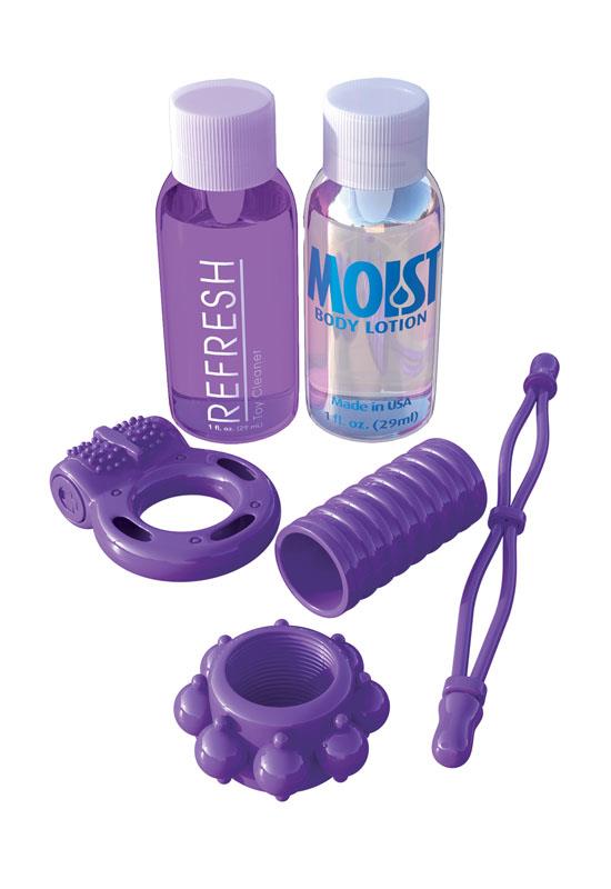 The C-Ringz Party Pack is a fun way to get creative with your cock. As an added bonus, this kit also has all the lube, cream and cleaning solution you’ll need to get started, so it doesn’t matter if you’re trying out your first cock toys or if you’re searching for the perfect travel pack to impress while on the road. These cockrings will help you maintain a full, throbbing and firm erection so that you can pleasure your partner and yourself! Cock Ring Collection – this set comes with 4x excellent cock toys to experiment with. All of these toys are made with Fantasy’s TPR material, which is fully body-safe and phthalate free. This material makes these toys super soft and impressively stretchy for comfort and a good fit. Put a Ring on It – the Party Pack includes a vibrating ring that feels great on while also tickling and pleasing your partner during penetrative sex, particularly if angled around the clitoral area. The pack also includes an adjustable erection ring; this long rope looking toy can secure around the penis and the balls if desired, using the adjustable toggles to constrict or release pressure as desired. The included sleeve may come in two different styles – either a cylindrical swirly tube or a similar cylinder with nodes for penetrative stimulation, likewise the thinner node covered ring may have varying numbers of nodules. Care and Clean-up – The Party Pack comes with a set of lubes and creams that are handy for enhancing the feel and fun of your toys. In each pack there is 10mL of Girth Enhancing Cream, for a thicker fuller feeling. You’ll also receive 30mL of water-based Moist lube, for comfort when using your toys and for some slick, smooth fun with your partner. When you’re done you can use the included toy cleaning solution to help remove any fluids and lubes that may cling to your toys, this will help keep them in great condition for a long time. *Please note: box image is indication only, cock ring and sleeve patterns may vary slightly.Bring the party to the bedroom with this party pack. This set is packed full of goodies to enhance the feel, firmness and power of your erection during naughty romps. 1x Mega-Stretch Ring with Nodules 1x Vibrating Travel Ring 1x Mega-Stretch Sleeve 1x Erection Ring 10mL Max-Width Cream 30mL Moist Body Lotion 30mL Refresh – Toy Cleaner