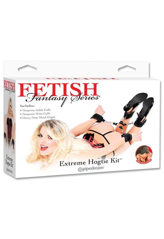Bound to please your partner, this hogtie kit is a great addition to those wanting to delve into BDSM. With Cuffs for the Ankles and Wrists made of a combination of black neoprene and velcro, this kit is soft enough for the beginner wearer to enjoy but strong enough to bind their arms and legs for your full enjoyment. Attached to a Metal O-Ring for strength and durability, this kit will allow you to enjoy your submissive to their full extent. Tie them up with arms and feet in front or for a more advanced move, with arms and feet behind – you will have a full access granted pass to tease and tantalize. Great for the Beginner Player, this kit doesn’t have any complicated ties, knots or attachments to master before playing. This allows you and your partner to enjoy the full extent that this kit has to offer without it coming undone at the wrong time. You can easily release the cuffs by pulling the heavy-duty velcro ties away when needed. The velcro ties are strong enough that any resistance from the submissive wont allow them to come open and the design of the ties wont allow them to open it themselves! With a Bonus Satin Love Mask included, you can really enjoy all that this Hogtie kit has to offer! With no visual cues and a restraint in place, your submissive will be at your mercy! Punish or reward them at will: with this Hogtie kit, everyone wins in the end!Tie em up! Or Tie em down! The choice is yours with the Fetish Fantasy – Extreme Hogtie Kit. With easy to use cuffs for the ankles and wrists, you can quickly get this on your partner and then really get into the fun. Cuffs made of Neoprene and Velcro Metal ring for strength and durability No complex twists, knots or attachments – simply attach and play Bonus: free love mask included