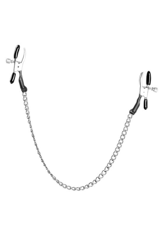 Take your kinky adventures to the next level with these alligator nipple clamps. Fully Adjustable, they provide a firm squeeze that’s best enjoyed by all BDSM enthusiasts. Adjustable screws enable seamless domination over tension levels. Once the clamps are in place, try tightening the pins little by little to slowly increase the intensity. The PVC Coated Clamps on these nipple clamps are highly adjustable, allowing you to apply just the right amount of scintillating pain to your naughty little sub and then locking it at that level, for that fine line between pleasure and pain. The rubber coating on the ends of the clamp ensures that the nipples feel the pinch of the clamp without cutting into the skin. The PVC coated ergonomic finger-pads make removal fast and simple. The Gorgeous Silver Chain turns the nipple clamps into a piece of lovely jewelry like embellishment when worn as part of a sexy outfit. Take your BDSM play to greater heights with gentle tugs on the chain, or for more adventurous users you can add weights to the chain for increased intensity and pleasure. For extra impact, you can use the chain to pull your lover towards you.Tease and please with these alligator nipple clamps. Offering a firm grip for a satisfying sensation, each metal clamp features 2 pinchers covered with supple rubber liners for increased intensity and pleasure. Place each clamp on a nipple, adjusting the screw pin to set the perfect amount of tension to provide exquisite pinching pleasure with a little hint of exquisite pain. Enhance the experience further by gently pulling on the adjoining chain. The removal of the clamps will trigger a rush of delightful warmth as your blood flows back into each tingling nipple. When you release the nipple clamps your nipples will feel pert and ultra-sensitive to subsequent touches. Adjustable nipple clamps for sensational nipple arousal PVC coated tips soften sensation The metal chain adds weight for more intense stimulation