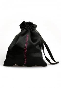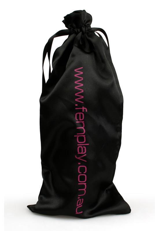 Keep your precious toys and sexy bits’n’pieces secure and safe in one of our satin bags. At 15cm x 15cm, the small Femplay bag is an ideal place to store small lubricant bottles, condoms, cockrings, bullets and mini-vibes. The drawstring keeps all your goodies together so that your collection doesn’t go rolling around in your wardrobe or drawers. The satin material and deep glossy black colour give off a non-suspicious look, but is still a little sexy when pulled out for playtime with your lover. Toy bags are also a manageable way to protect toys from dust and spores that occur in the home, or to keep toys and their warranty details together in one handy spot. This small black bag is a great way to keep all your smaller toys together, making them easier to store and easier to travel with should you need to pack for a romantic weekend away!A little bit sexy and a great way to store your toys, our satin toy bags are discreet and will help ensure the life of your favourite vibes, bullets, cockrings and more. Luxurious satin material Easy to use drawstring Approx. 15cm x 15cm