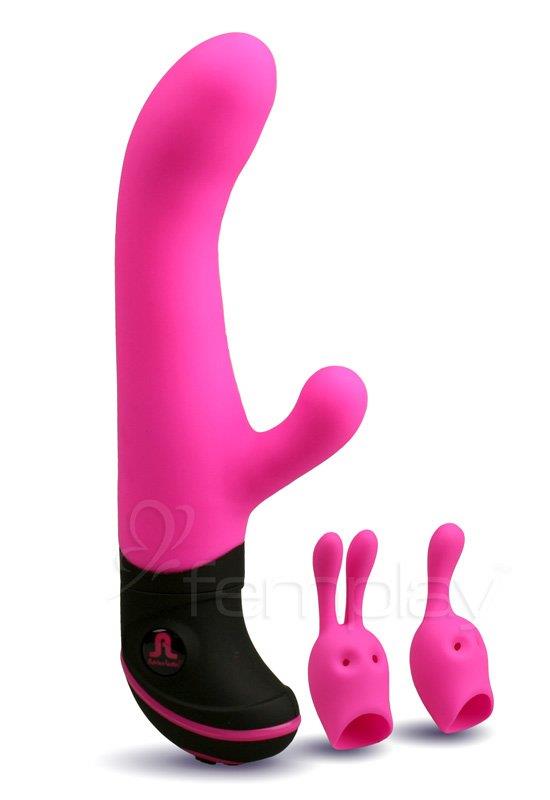 How Fun to have a Clitoral Massager with Two Removal Heads? One cap has one stimulating node; the other has two. You can also use the clitoral massager independently. Both heads seal firmly onto the massager and when they are put to work, will transfer the powerful vibrations to your pleasure centre. You can experiment with the heads, the speeds and the modes of vibration to find the perfect combination for you. The Shaft has an insertable length of 10.5 cm (20.5cm for the total length) and a width of 3.4cm. It is less phallic and more fun, in appearance. It has a thick, curved end to help stimulate your g-spot. With a little help from Butch Cassidy, you will be able to find the right spot, every time and when you get there, you can easily select the pattern of vibration that is most pleasurable for you. Speaking of Vibrations, this vibe has two powerful motors as well as a range of vibration patterns and intensity levels to choose from. That’s 10 vibration modes and 10 speeds. A total of 100 different settings to choose from before you start experimenting with the heads. So many options, not enough play time!! It is Made from Silicone for a soft but firm texture. It is splash-proof and water washable with a water-based toy cleaner. Be wary of any silicone cleaners in your collection. These cleaners could damage silicone toys. This Vibe is Powered by 4 AAA Batteries. It comes with the first set but while you get to know each other, you’ll want to have a few changes on hand. And don’t worry, despite of that power, it’s still quiet to use.This vibrator puts a fun twist on the classic rabbit vibe. With two removal caps for the clitoral massager, a curved shaft for g-spot stimulation and enough settings to raise the roof, this vibe is a great all-rounder. It is cute, playful and pink. This vibe offers a powerful combination of vaginal and clitoral stimulation while also being a bit fun. Fun caps for the clitoral massager Curved shafted for g-spot stimulation Multi-speed controls on the handle: 10 modes and 10 speeds Made from silicone and is phthalate free Comes with 4x AAA batteries