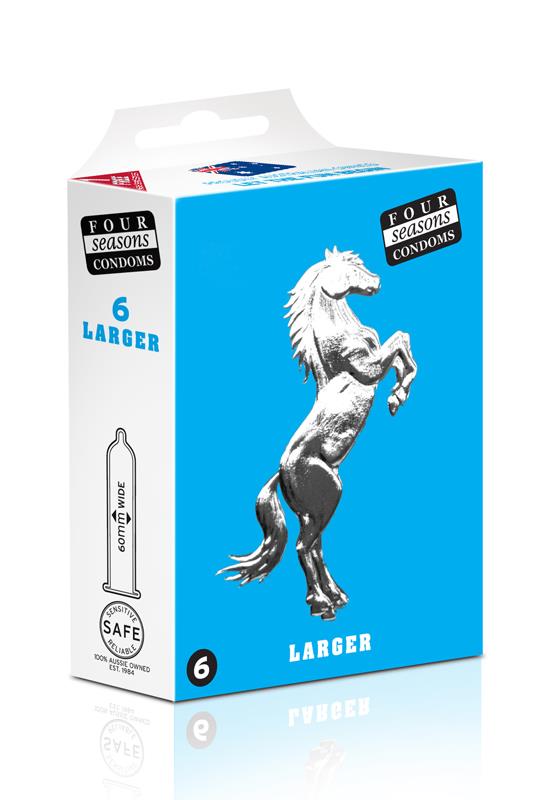 These transparent, lubricated condoms are made to be extra sensitive so you’ll hardly know you’re wearing them! 59MM nominal width larger fit. This 6 pack of larger fitting condoms contains 1 free water based lubricant sachel. Do not use an oil based lubricant as this may weaken the condom. Four Seasons Water Based Lubricant is ideal for use with this condom. For single use only. Four Seasons Condoms are manufactured to the highest International Standards and are electronically tested for your security.At last comfortable fitting condoms for larger men. These larger fitting condoms are an ultra sensitive condom and have been created for men with a large to very large penis size. Using condoms will help reduce the risk of Sexually Transmitted Diseases. These highly advanced condoms have been specifically designed for the man who needs a condom that has a larger and more comfortable fit. These condoms have been specially lubricated for maximum pleasure; these condoms are extra long, extra wide and extra sexy. A pack of 6 or 12 extra large condoms – contains natural latex Extra lubricated Natural feel Clear colour No latex smell