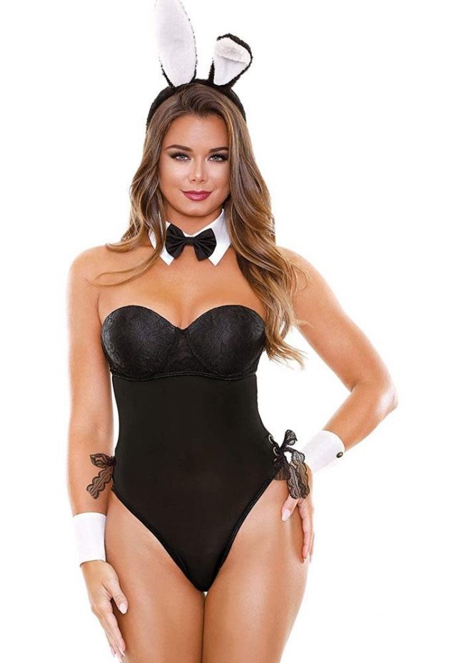 You’ll Have to see this 4 piece set to believe it. Includes Black lace-up teddy with hook & eye closure and a keyhole back, Poseable ear headband and bowtie collar & cuffs. Nobunny does it better!Features:- Hook & Eye Closure- Lace Up Sides- Removable Tail- Touch Fasten Collar- Buttoned Cuffs- Adjustable EarsColour: BlackFabric Content: 90% Polyester, 10% SpandexWashing Instructions: Hand wash separately in cold water. Do not bleach. Flat dry. Sizing Info:S/MSize: 2-6 (AUS 6-10)Bust: 32”-36”Hips: 33”-38”You’ll Hef to see this 4 piece set to believe it. Includes Black lace-up teddy with hook & eye closure and a keyhole back, Poseable ear headband and bowtie collar & cuffs. Nobunny does it better! Features: – Hook & Eye Closure – Lace Up Sides – Removable Tail – Touch Fasten Collar – Buttoned Cuffs – Adjustable Ears Colour: Black Fabric Content: 90% Polyester, 10% Spandex Washing Instructions: Hand wash separately in cold water. Do not bleach. Flat dry. Sizing Info: S/M Size: 2-6 (AUS 6-10) Bust: 32”-36” Hips: 33”-38”