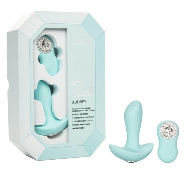 The Pave – Audrey is an enchanting women’s anal toy that is designed to the highest level for your visual and physical pleasure. Anal Stimulator is a pleasant size of 6cm in length and 3cm in width. It has a lovely slightly tapered tip for easy insertion but make sure you use a wonderful water based lubricant when playing to increase your pleasure. The flared base is designed perfectly to sit comfortably against the bum so you can wear and enjoy for longer periods of time. 7 Functions and 5 Speeds that are accessed via either the remote control with easy to use buttons or the stunning crystal control on the vibe. Remote Control so that you can play easily and almost hands free. You can also give the remote to a lover so that they can tease and please you. High Quality Luxury Silicone Material as only the best is what you deserve. USB Rechargeable and Waterproof so playing in the shower or bath is fun. Pave – Audrey is a mischievous yet exquisite designed anal stimulator with a crystal control on the vibe and the remote control. Anal Stimulator 7 Functions and 5 Speeds Remote Control High Quality Luxury Silicone Material USB Rechargeable and Waterproof
