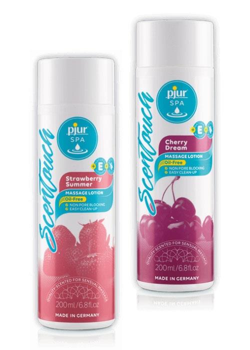 pjur Spa – ScenTouch Lotion made in Germany by a team that is dedicated to providing everyone with beautiful lubes and massage oils and lotions that feel wonderful on and in our bodies. ScenTouch Lotion With no colour it will leave no marks on your sheets or wherever you decide to play. It’s easy to wipe off without leaving any messy residue. Use as a massage lotion and seduce your lover into relaxation and eager to play, there are no oils in the ScenTouch and it’s also vegan friendly. Available in 2 Flavours yummy Strawberry and Sensual Cherry, both are not overpowering and won’t take away from the mood. Ingredients:Enriched with jojoba and natural Vitamin E – not tested on animals no parabens, homones or colorants. Not to be used with condomspjur Spa – ScenTouch Lotion is a seductive scented massage lotion to provide your lover with a sensual massage with sweet smelling flavours. ScenTouch Lotion Available in 2 Flavours Ingredients Below
