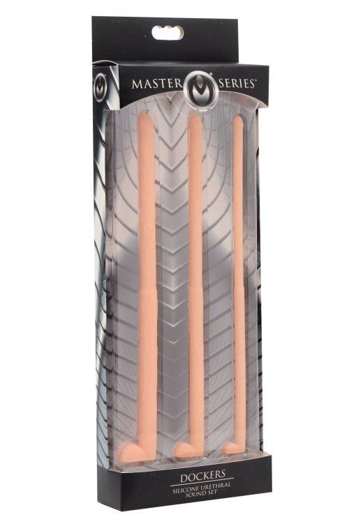 Start your Urethral Sound Play of right with the Dockers Silicone Urethral Sound Training Set as it’s ideal for the beginner and playful for the more advanced. Urethral Sound Play is slowly sliding a specially designed item down the urethra (your pee hole) for your enjoyment. Whilst for some this may not sound right for you but for others in brings a throbbing sensation to their manhood just by the thought of it. Dockers Training Set with 3 Sizes Included have to be the manliness training sounds around as they look like really long penises, balls and all. With 3 different sizes in the set, all of which are the same lenght of 8 inches and you start of with the small one which is nice and thin at only .20 to .23″ in diameter thickness. Next level up is the medium at only .28 to .31″ in diameter thickness, up one more level to the biggest in the set is the large at .35 to .39″ in diameter thickness. This provides you with a good starting point in trying out urethral sound training and if you want to continue it with different styles of sets. Silicone Material which is soft and flexible allows for easy insertion, you just have to make sure you use a good water based lubricant. Things to Remember, take is slow, use lube, be clean and hygienic, always clean your toys after use and keep them in a cool, clean and dry environment. Dockers Silicone Urethral Sound Training Set are the ideal set for any man that has even had the slightest thought of trying out the kinkiness of Urethral Sound play. Urethral Sound Play Dockers Training Set with 3 Sizes Included Silicone Material Thing to Remember