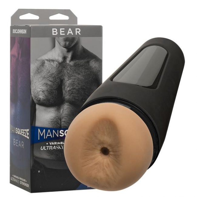 Bear and lube up and get ready for the Man Squeeze – Bear Ass Stroker. Bear Ass Stroker has the look and feel of that big bad hairy man ass that you crave (without the actual hair) With life like material with this ultraskyn stroker and the hole with the pure ass look it’s ready to go. Textured Inner Sleeve to provide your cock with the feelings that you need. The tunnel has incrimental levels from tight to snug to a slight width. Pumping the bear all the way. Squeeze for Pressure it’s that easy. You want more pressure you simply squeeze the Man Squeeze and it will deliver. Full Suction Feeling as the base twists to adjust the suction strength to your liking. For the best Bear fun use some water based lube as little or as much as you desire. Man Squeeze – Bear Ass Stroker is the bear of all male anal strokers, lube up and ride him. Bear Ass Stroker Textured Inner Sleeve Squeeze for Pressure Full Suction Feeling