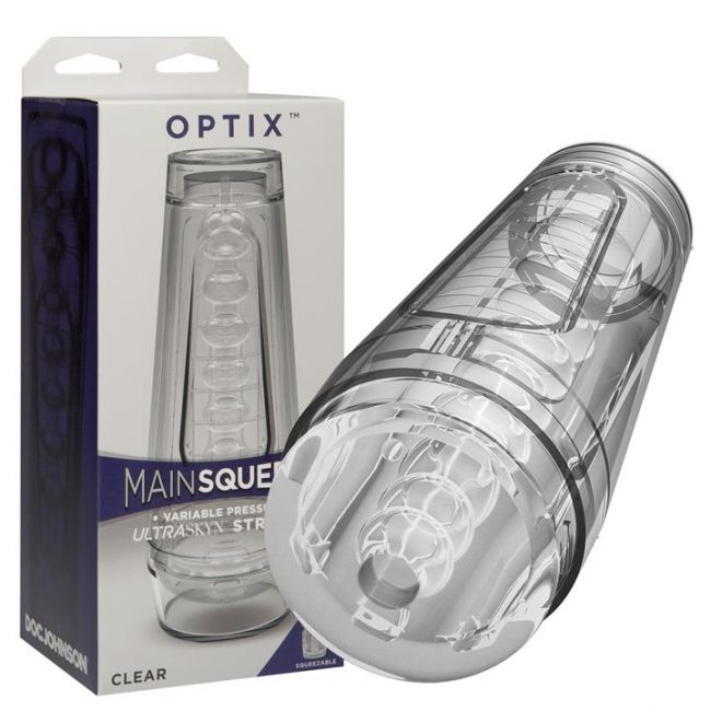 The Main Squeeze – Optix Stroker is a tight and textured ass style masturbation sleeve that gives you the control of your suction pleasure. Main Squeeze Ass Optix Stroker is a completely clear ass masturbation sleeve for a real visual stimulation experience. That’s the whole chamber, the internal chamber the whole deal is clear. The internal chamber tunnel is pure ass man, it has all the texture you want when sliding yourself into it. Lube yourself up a bit and slide on in. The main squeeze let’s you squeeze the firm outer case to assist your level of pleasure. Squeeze when you want it a bit firmer don’t when you want it lighter. Intense Sunction with the main squeeze Optix Stroker is all in the base of the sleeve case. The end case and base just needs a twist to provide you with more suction to put you over the edge. Total length of the Main Squeeze – Optix Stroker Ass is 7.5″ which the ideal size for most. Remember to use some lube for the best experience. Main Squeeze – Optix Stroker is a unique ass masturbator that let’s you see your hard cock sliding in and out of the tight ass stroker. Main Squeeze Anal Optix Stroker Intense Suction