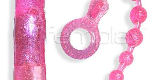 The Soft Jelly Glitter Play Kit has a little something for each area that you want to explore, with a little glitter for that bit of style and bling. 6 Inch Vibrator is not too big and not too small, it is just right. You can use it internally or play with it on your clitoris whatever takes your fancy at the time. It has multiple speeds for you to enjoy the vibrations from low to high. Bum Fun with the anal beads that are small enough for the beginner to start with. Pop one bead in at a time until you can pop more and more in. Always use some lube when playing with anal toys as it is far more pleasurable if you do. It doesn’t matter how small the toy is always use some lube. It is an enjoyable experience to pop the beads in then start getting hot and heavy and just when you are about to orgasm reach around (or get your lover to) and pull them out. This can provide a higher than expected orgasm than what you would have received prior. Longer Lasting Erections can be achieved by wearing a cock ring. They are designed to decrease the blood flow through the penis which means that you are harder for longer providing you both with a lot more pleasure.Soft Jelly Glitter Play Kit is perfectly suitable for the beginner who wants to explore their sexual appetite. Small Vibrator Anal Beads Cock Ring
