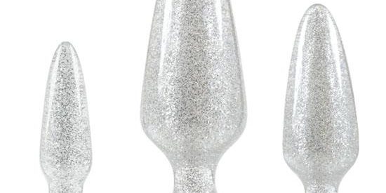This set is glittery, fun and perfect for an introduction to anal pleasure. Build up your skills one plug at a time, or go through the whole set in one go for some naughty fun. This is a naughty set that’s perfect for a beginner, or for warming your partner up to the idea of anal sex without the daunting look of other larger toys. Glitz and Glitter – the Booty Boppers are really appealing looking toys. These visually stunning plugs bring together transparent, body-safe TPE plastic and well secured glittery flecks, creating a set of toys that will have you itching to test these out when you’ve got some time to play. Increasing Size – anal training kits are designed to work your sensitive anal muscles, building their flexibility and strength so that you can eventually try more advanced anal toys or anal sex comfortably and pleasurably. When you’re not used to anal toys, even the smallest of plugs can feel amazing and different. With this set, you can start at the small and flexible mini-plug before building up to the fuller and larger plugs which boast more length and girth. Texture and Feel – the great TPE material of these plugs makes them flexible, smooth and supple. The sturdy material also allows for use with any lubricants, so that you can pair your favourite – or a reliable anal lube- with any of these three plugs without worrying about any damage to the plug. Suction Cup Base – each of these great plugs has a strong suction-cup base, perfect for securing onto tiles, mirrors and walls. When secured these plugs can be easier to insert, or can be bounced on for penetrative pleasure.Anal play can be erotic, pleasurable and even hot to watch. It can be a form of sexual play that you have to work your way up to though, which is where this gorgeous, cheeky set comes in! The Booty Boppers Trainer Kit is perfect for a fun introduction to anal pleasure. 3x Graduating Size Plugs Mini, Small and Medium Plugs Sparkly, Smooth Look.